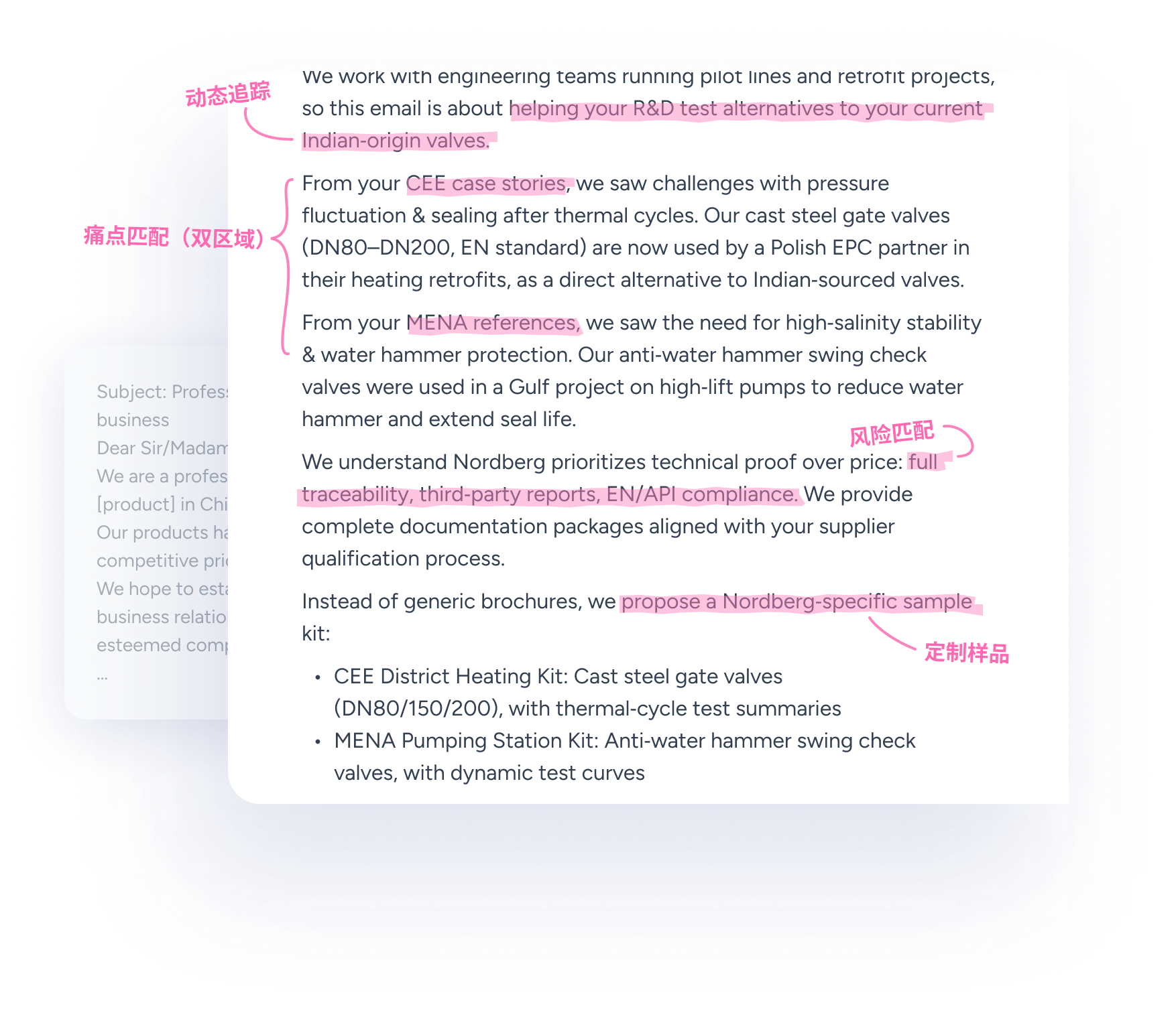 不靠模板,基于背调情报自动生成直击痛点的个性化开发信,并给出清晰下一步行动。